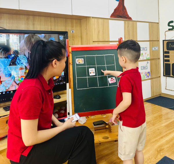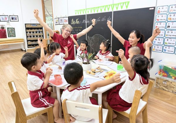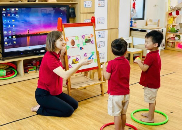 Hệ song ngữ: 50% thời gian (1/2 ngày học), học với GVTA nước ngoài, GVTA Việt Nam trong lớp cả ngày Hệ Quốc tế: Học full với GVNN. Mỗi lớp có 3 giáo viên – 1 GVTA nước ngoài, 1 GV mầm non, 1 trợ giảng |
