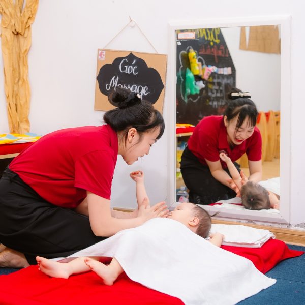 Điểm nhấn của chương trình giáo dục của khối Nhà trẻ là MASSAGE kích hoạt giác quan và TIẾNG ANH. Bé có được tinh thần thoải mái, sảng khoái và phát triển cư xử tốt hơn trong cuộc sống nhờ chương trình massage kích hoạt giác quan. Bé được học Tiếng Anh tương tác với màn hình Smart TV cùng giáo viên nước ngoài.